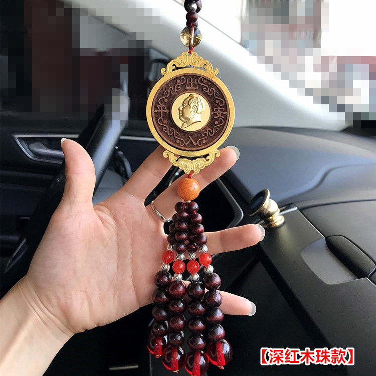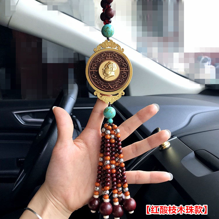 原创毛主席汽车挂件后视镜挂饰车饰檀香木镀金头像车挂