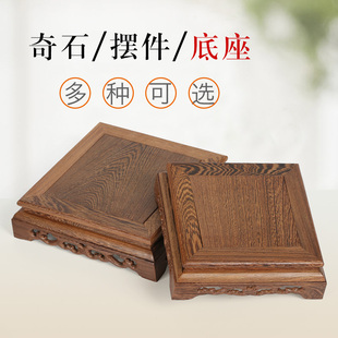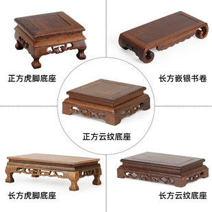 东阳红木奇石底座实木雕摆件长方形花盆景佛像花瓶石头木托工艺品