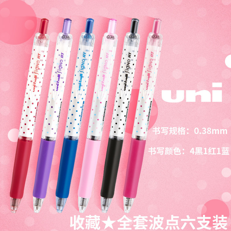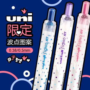 uni三菱铅笔中性笔限定波点0.5彩色按动水笔高颜值女生款 做笔记用刷题考试uniball黑色UMN138学生文具0.38