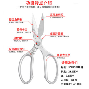 王麻子厨房剪刀家用多功能强力鸡骨头专用食品级不锈钢食物大剪子