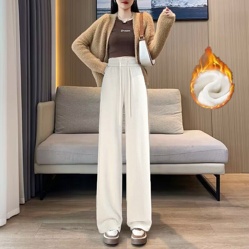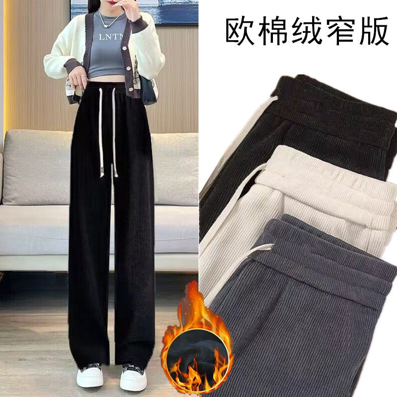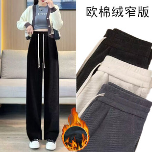 宽松灯芯绒垂感直筒裤 羊羔绒加绒加厚雪尼尔阔腿裤 女2024秋冬新款