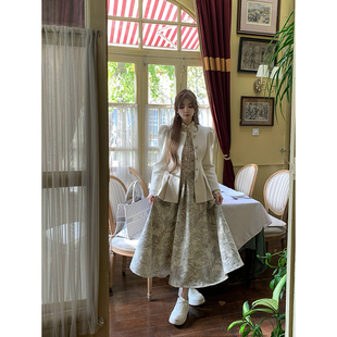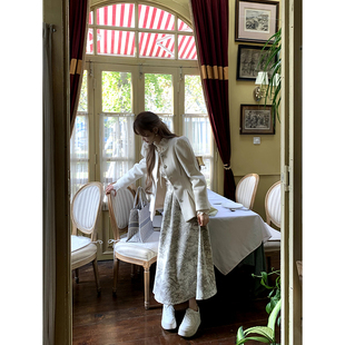 修身 巴黎艺术生白色提花半身裙女春季 RomanLand 显瘦长裙子