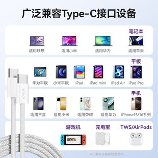 适用苹果17双typec数据线iPhone16ProMax充电线PD60W快充双头编织线usbc华为小米专用iPad手机笔记本ctoc接口