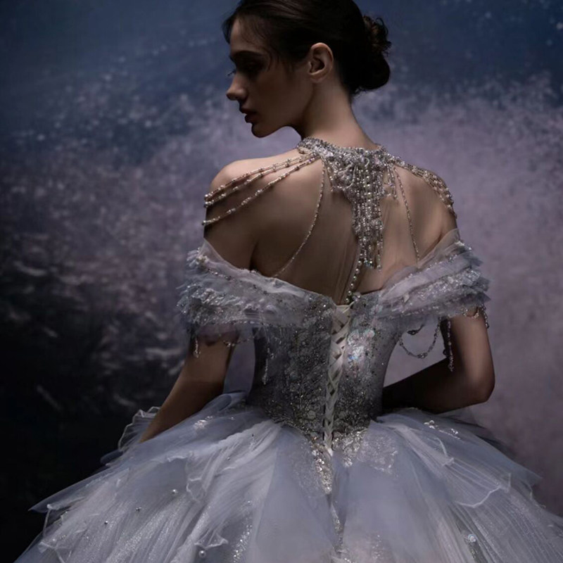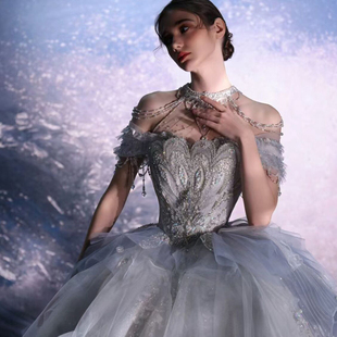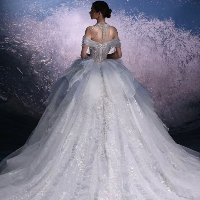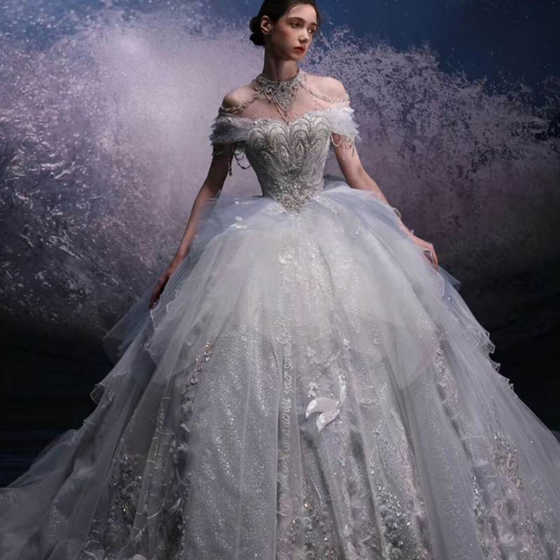 新娘结婚婚纱仙气重工宫廷蓝色主纱大拖尾女 2025新款 星光女神