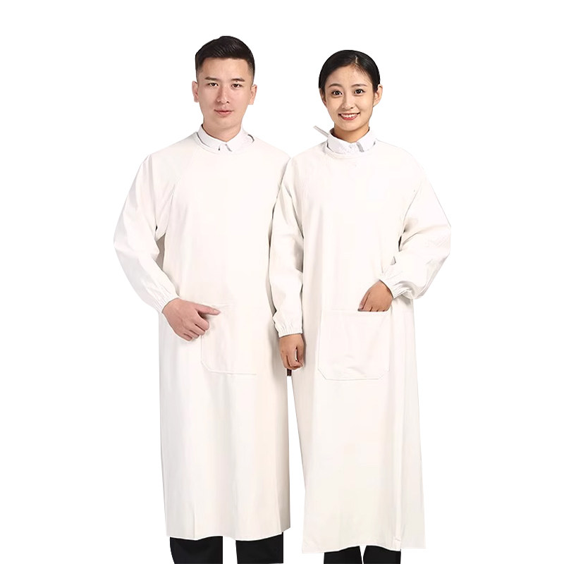 皮革PU软皮白色围裙厨师厨房食品厂防水防油加厚水产罩衣工作服男