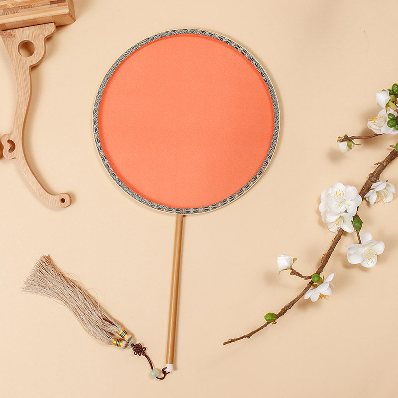 儿童汉服扇子团扇女童走秀拍摄长柄扇舞蹈绣花古风宫扇六一活动扇
