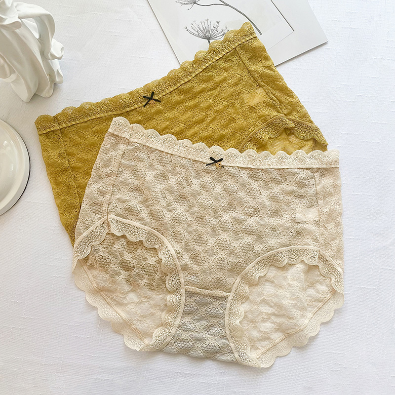 纯欲纯棉包臀中高腰无痕透气三角裤 女胖mm200斤蕾丝薄款 内裤 大码