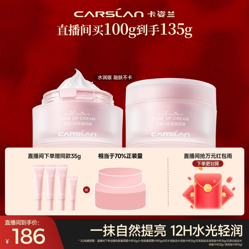 卡姿兰明星素颜霜水润懒人面霜自然显白提亮 直播间送正装