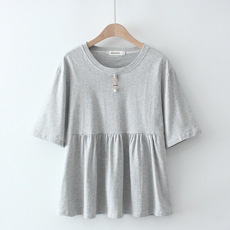 加大码 孕妇遮肚子上衣200斤体恤白色 怀孕晚期宽松T恤全棉弹力夏季