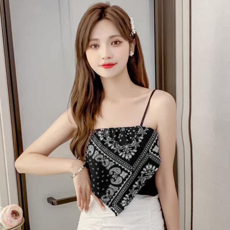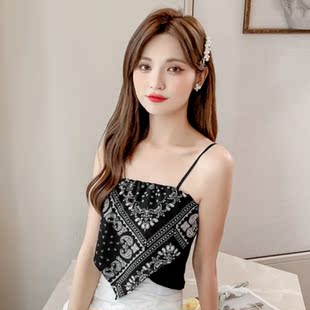 针织背心外穿潮 显瘦短款 性感辣妹复古倒三角巾小吊带夏季 胖mm大码