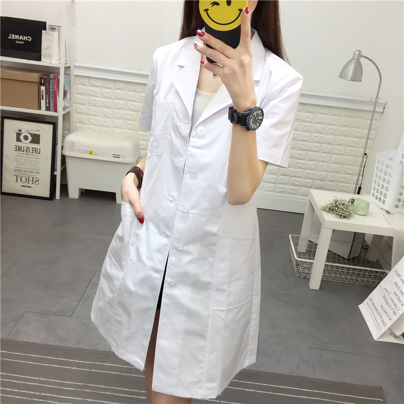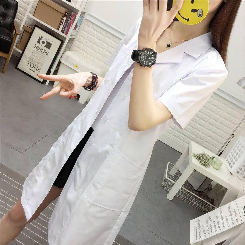 白色t药店美容实验室白大挂工作服长袖 女夏季 收腰 护士服短袖 新品