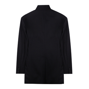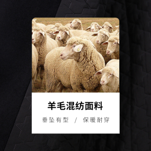 2025秋冬新款 中长款 商务休闲黑色外套 羊毛呢加棉大衣男士 才子男装