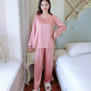 胖mm大码 家居服套装 长袖 舒适春秋新款 圆领甜美薄款 冰丝睡衣女夏季