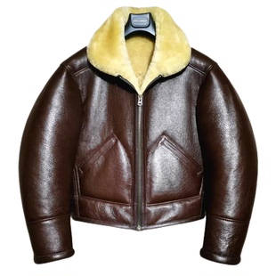 英国B6皮毛一体夹克欧美原产复古皮衣红棕色秋冬加厚外套男女同款