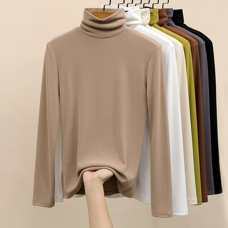 t恤大码 长袖 妈妈加厚保暖上衣 女内搭秋冬季 双面德绒半高领打底衫