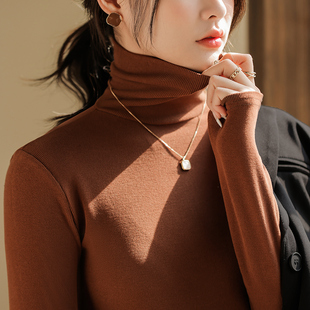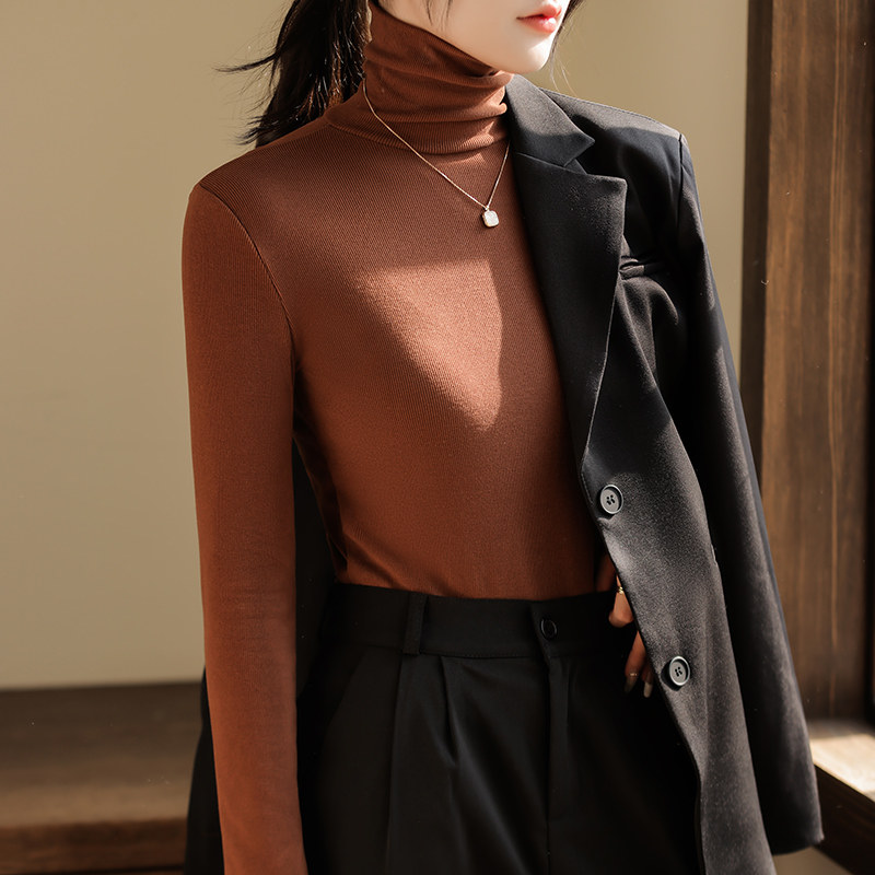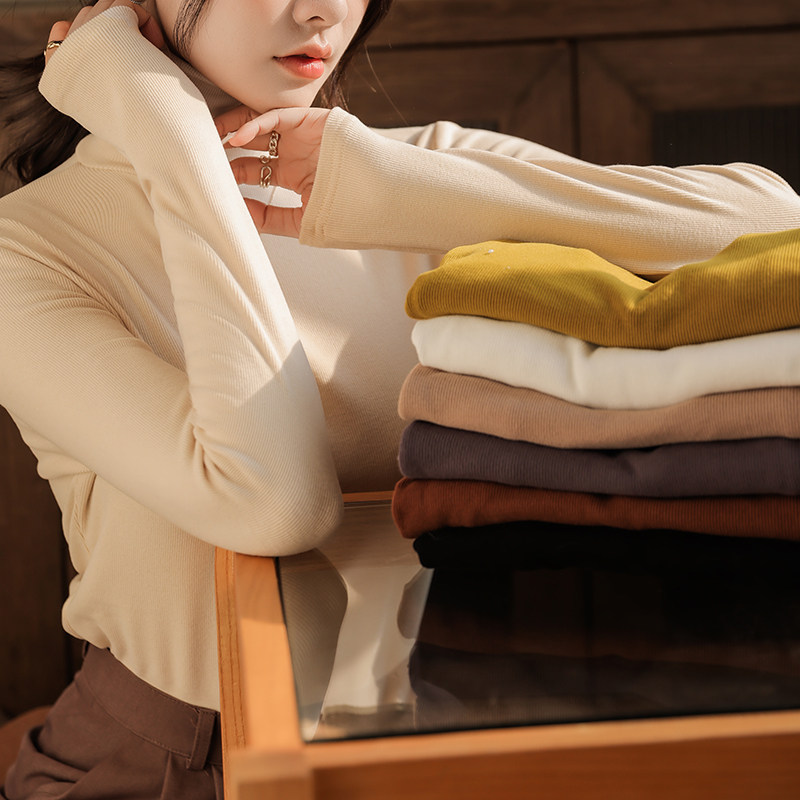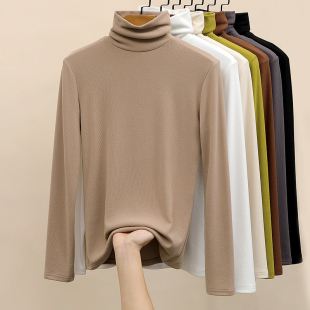 小立领基础款 T恤2025秋冬修身 上衣 女半高长袖 白色德绒内搭打底衫