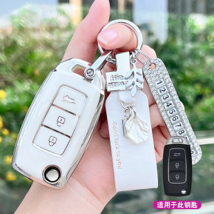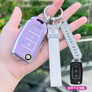 适用改装 A28现代菲斯塔增配遥控钥匙包扣女 后配折叠钥匙套KD子机