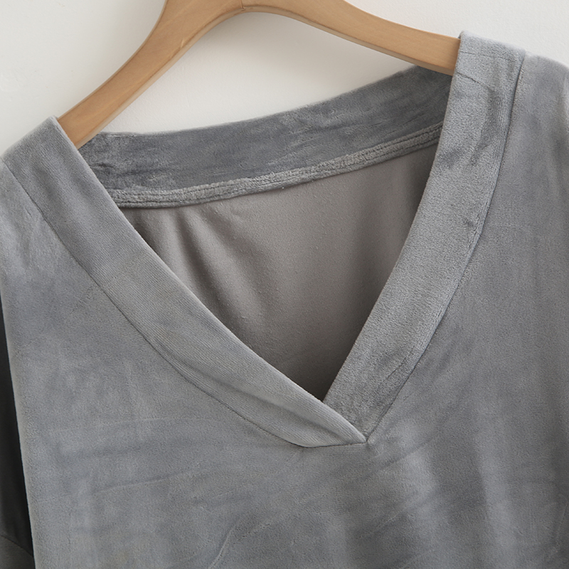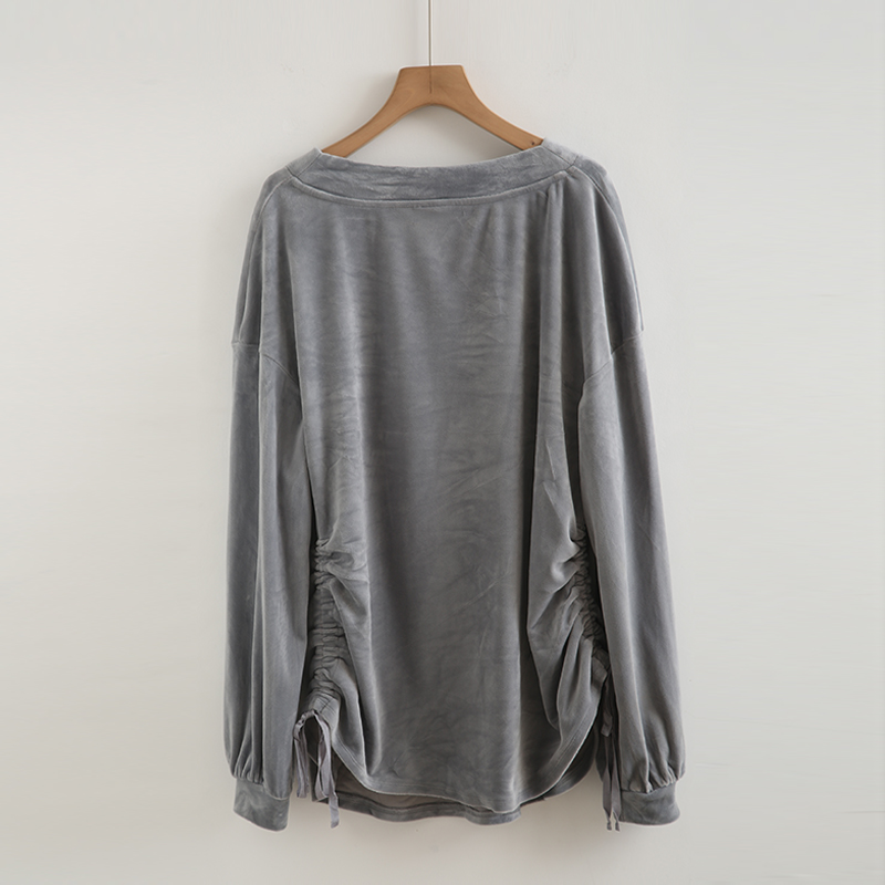 韩版 外贸女装 V领长袖 大码 上衣收边 金丝绒卫衣 套头大码 秋冬新款