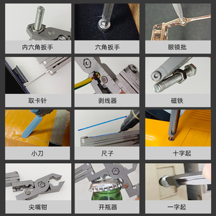多功能钥匙扣edc工具便携式 螺丝刀户外六角扳手取卡针小刀折叠钳