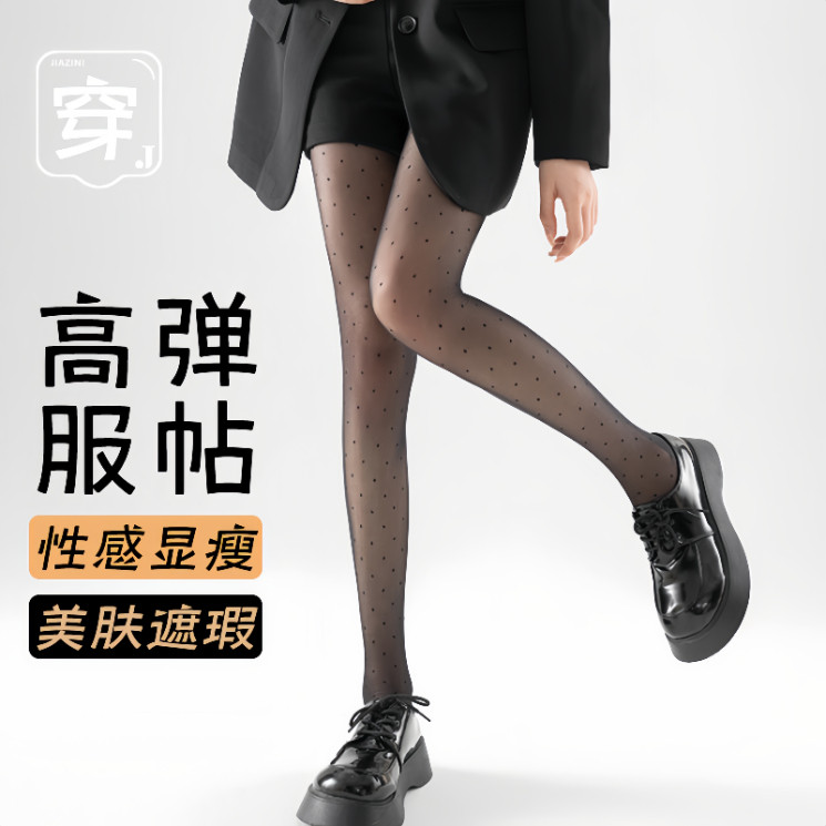 波点黑丝光腿性感神器女10d薄高透春秋款 防勾丝秋冬百搭黑色丝袜