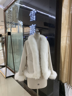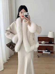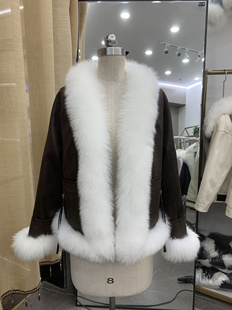 90绒卡米微贵气感狐狸毛领刺绣外套女2025短款 千金感冬日保暖皮草