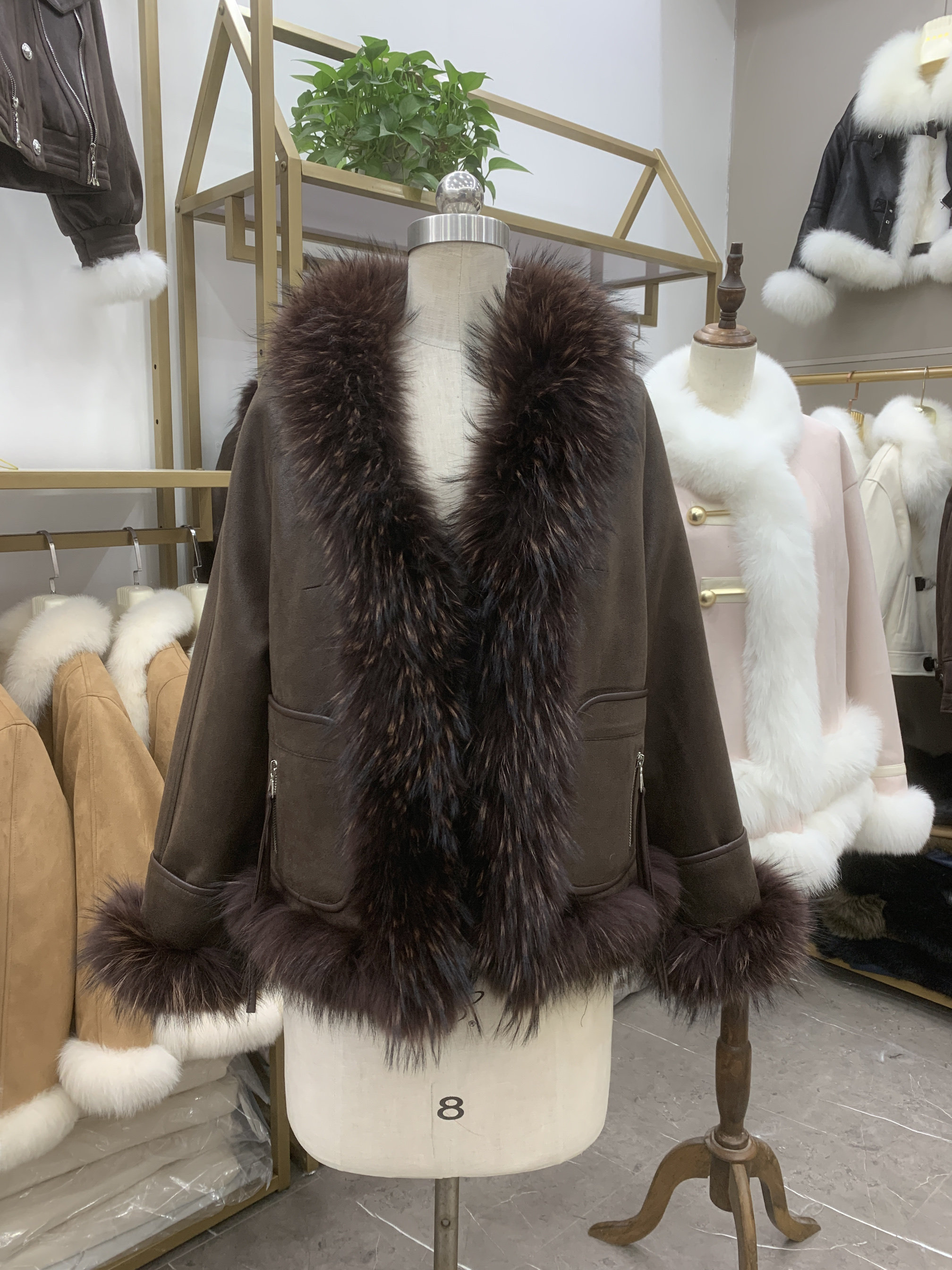 「暖冬咩咩」漂亮两穿领 环保皮草廓形外套 羊卷毛皮毛一体短款