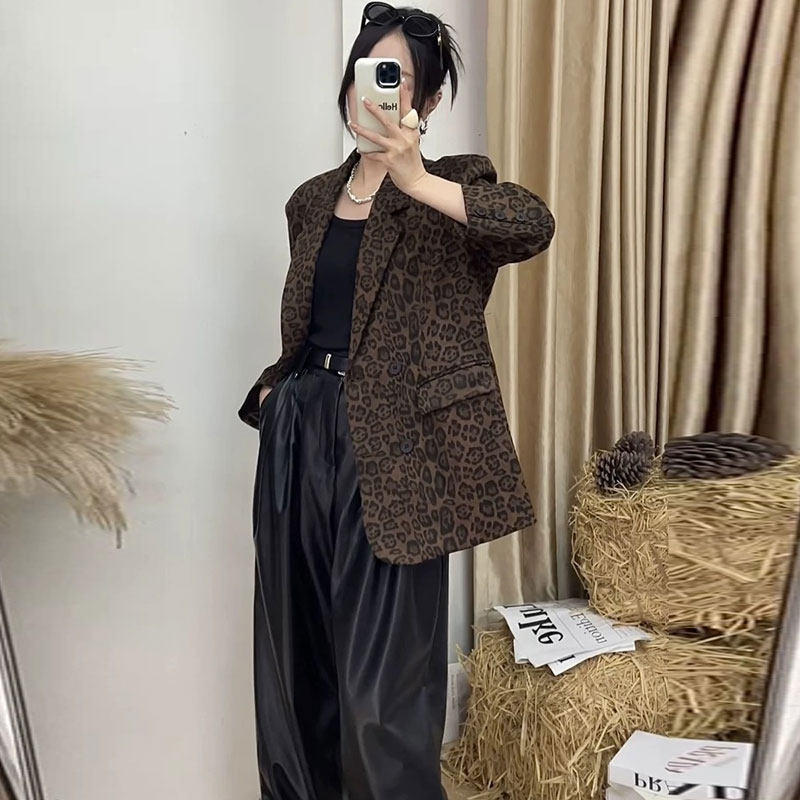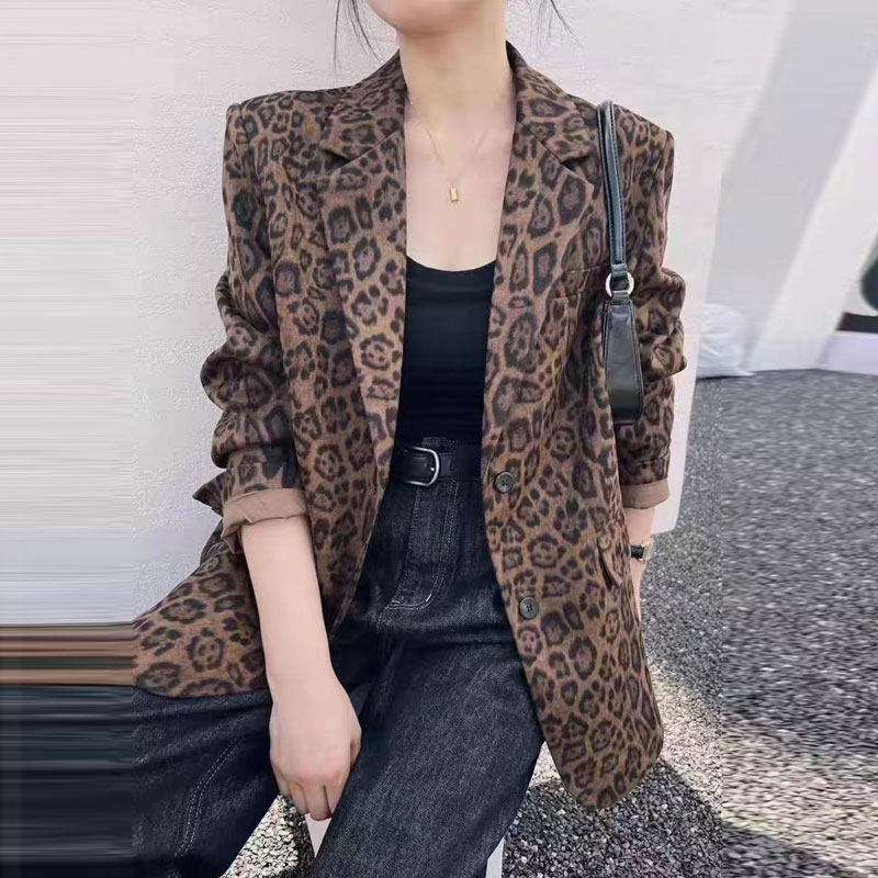 宽松百搭长袖 豹纹西装 韩版 新款 休闲西服外套 外套女小个子2025秋季