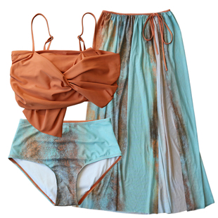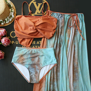 分体式 遮肚显瘦女 三件套情侣泳衣波西米亚风度假温泉保守性感泳装