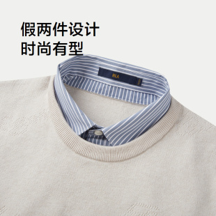 冬季 保暖双领针织衫 假两件包芯纱提花毛衣男 海澜之家休闲时尚 HLA