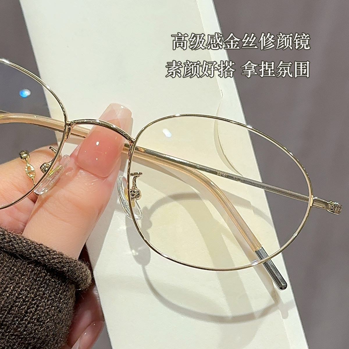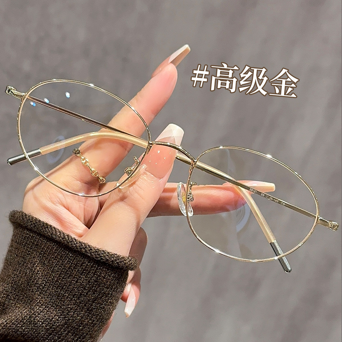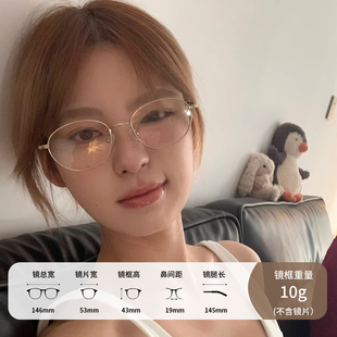 超轻纯钛椭圆框眼镜女近视可配有度数韩系素颜神器金丝眼睛框镜架