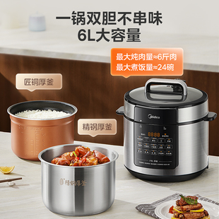 美 电压力锅家用双胆0涂层不锈钢大容量煲汤饭煲高压锅官方正品