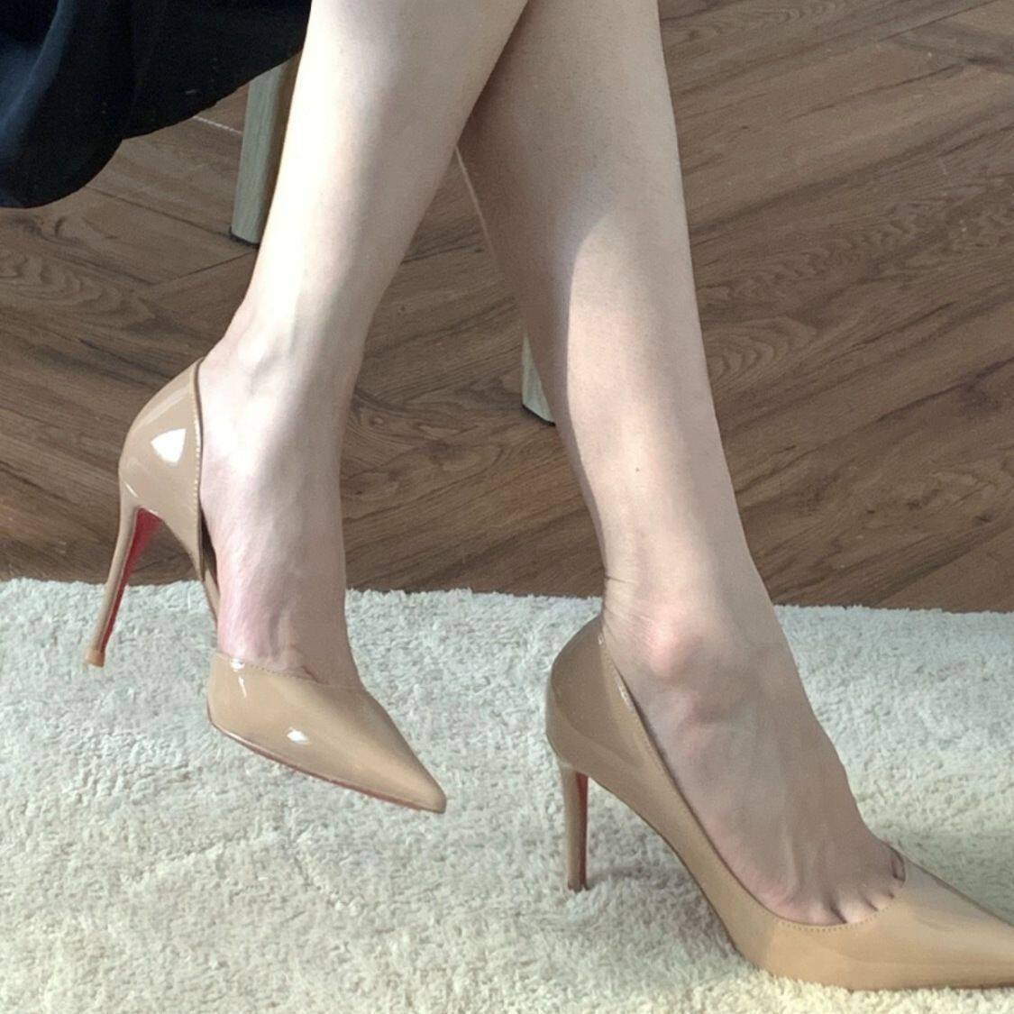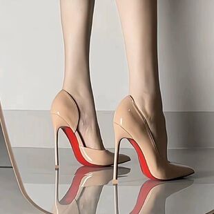 侧空法式 2024春秋新款 小众设计感 女细跟高跟单鞋 裸色漆皮高跟鞋