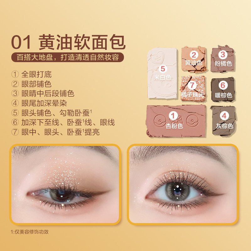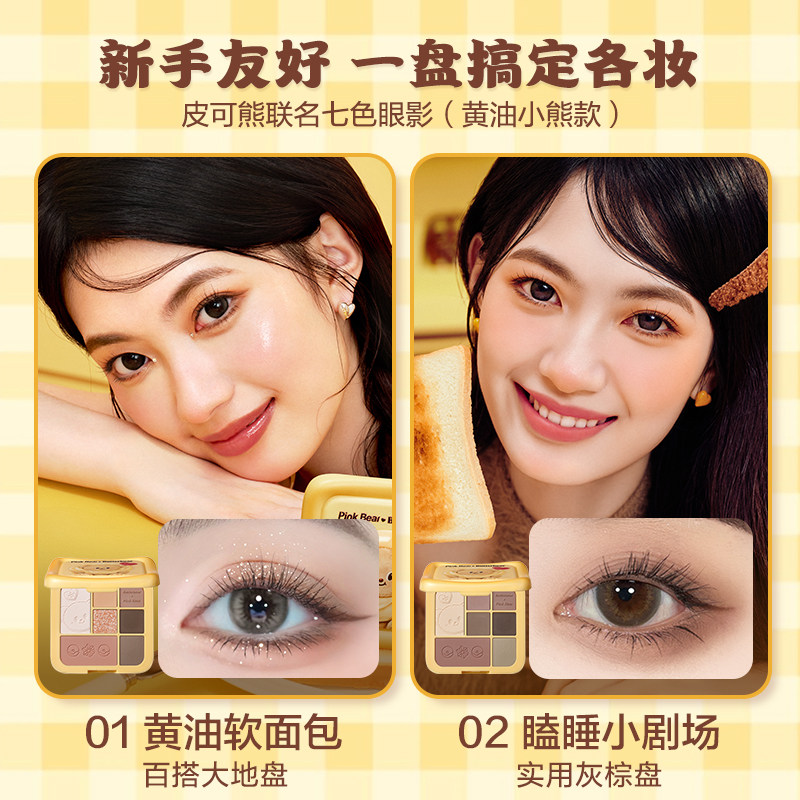pinkbear皮可熊黄油小熊综合七色眼影盘联名软面包