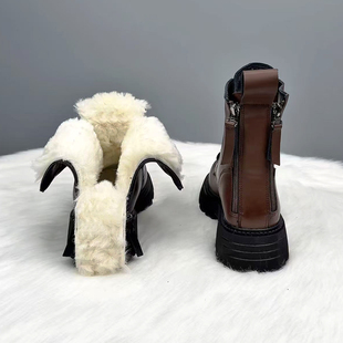 女短靴 中筒厚底保暖加绒加厚东北棉鞋 骆驼面包雪地靴2025冬季 新款