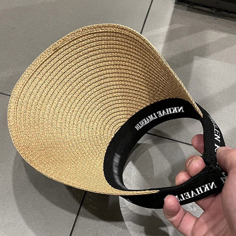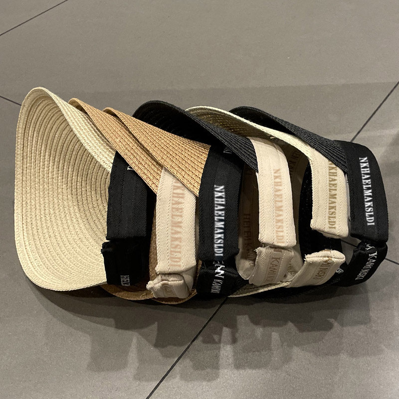 韩版 ins草编鸭舌空顶帽子女春夏沙滩度假防晒遮阳无顶发箍太阳帽