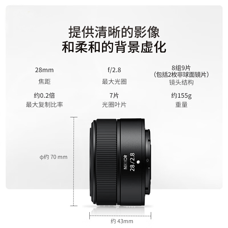 Nikon 尼康 全画幅广角定焦对焦镜头Z卡口 F2.8 28mm 自营
