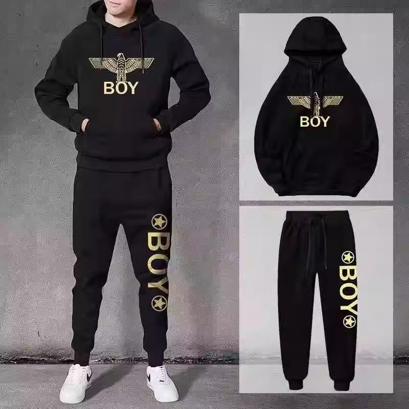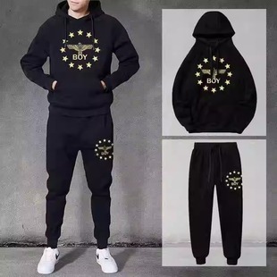 高端连帽卫衣套装 潮牌印花加绒保暖休闲帅气两件套 男纯棉秋冬新款