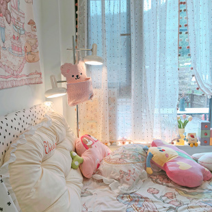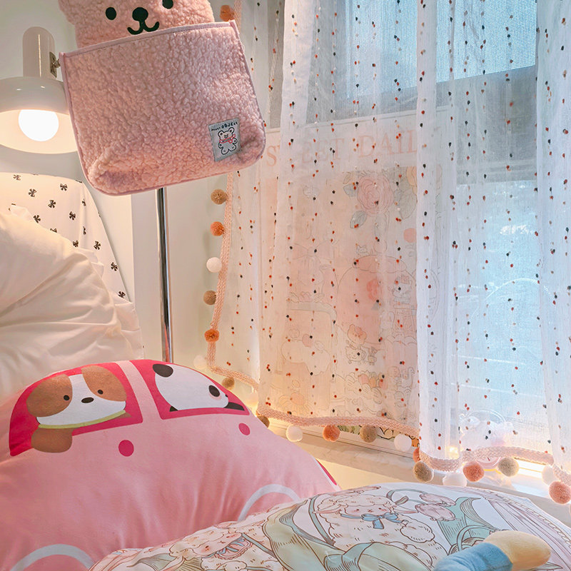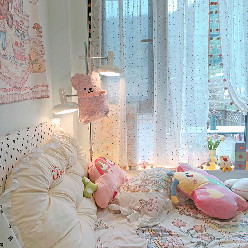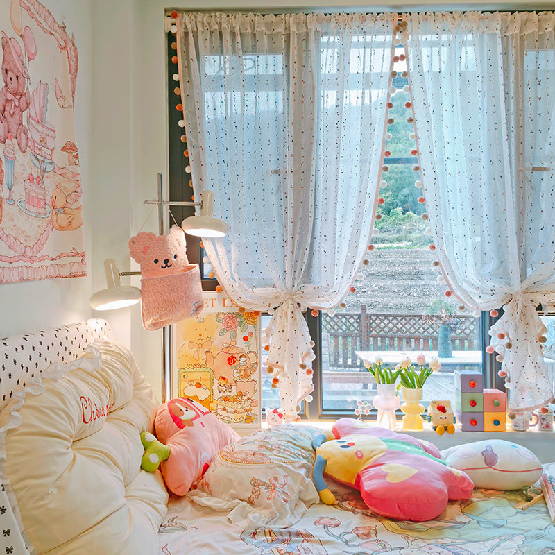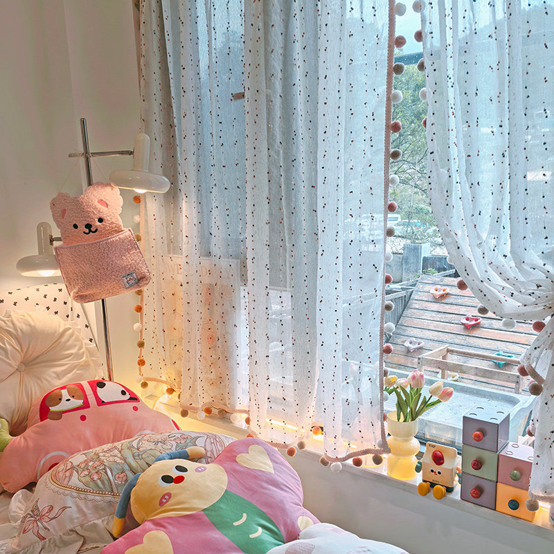 少女心房间布置温馨球球流苏花边飘窗窗帘高级感落地窗遮挡帘ins