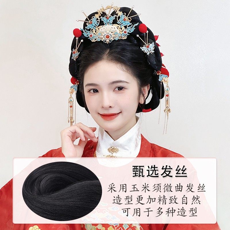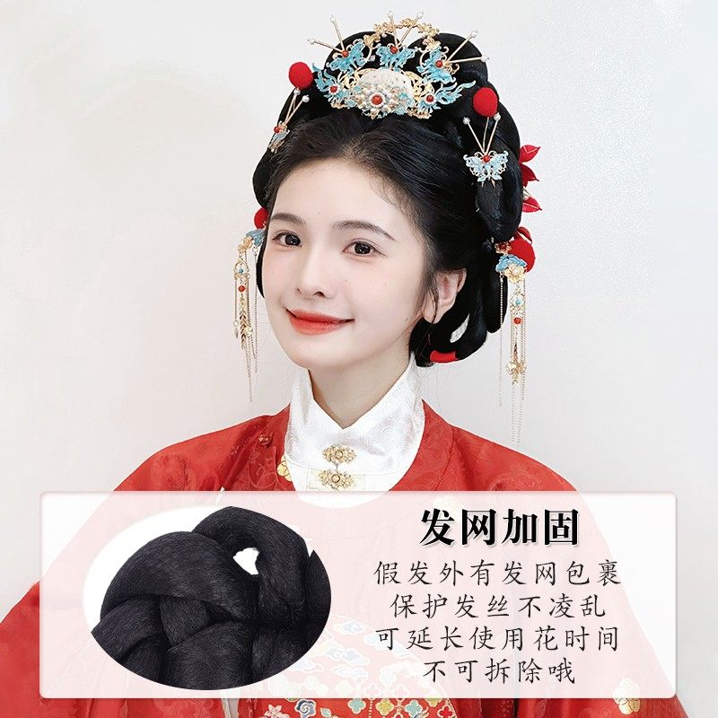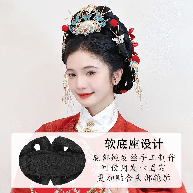汉服假发包古风盘发发髻一体式 头饰后脑勺垫发女 明制婚服造型古装