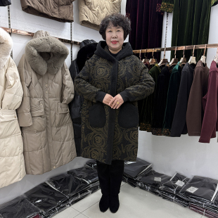 加肥加大冬装 妈妈双面穿毛呢外套女200斤拼色羊羔毛厚实保暖上衣