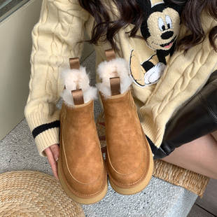 雪地靴加厚棉鞋 骆驼女鞋 加绒保暖时尚 新款 休闲短靴女 2025冬季