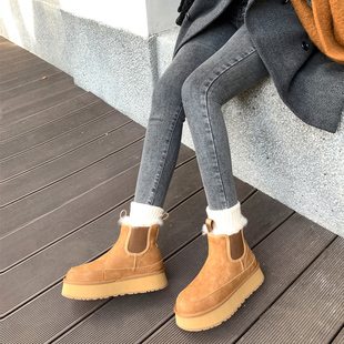 网红增高厚底保暖加绒外穿时尚 女冬季 雪地靴短靴 防水棉鞋 细细条