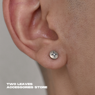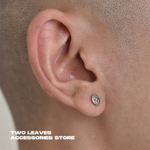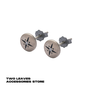 TWO S925纯银复古做旧镶钻十字耳钉男女街头百搭圆形耳饰 LEAVES