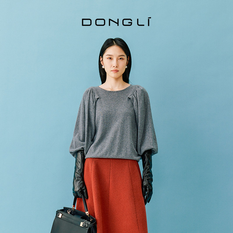小山羊绒 女针织长袖 春秋时尚 圆领套头衫 4761 灯笼袖 东黎溯源款