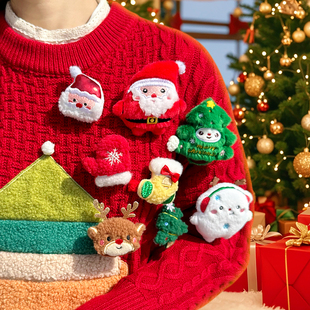 圣诞节儿童小礼物卡通可爱毛绒胸针女围巾毛衣别针装 饰创意小礼品