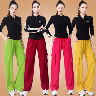 加绒健身跳操曳步舞女 上衣纯棉长袖 秋冬杨丽萍广场舞运动服装 新款