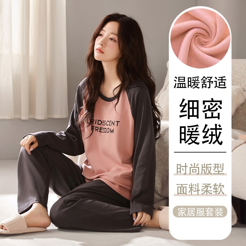 加绒加厚保暖家居服可外穿韩版 秋冬季 运动女休闲 睡衣套装 德绒长袖
