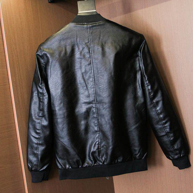 保暖夹克外套男士 内里加绒 立领长袖 冬季 皮衣H106 水洗超纤PU皮