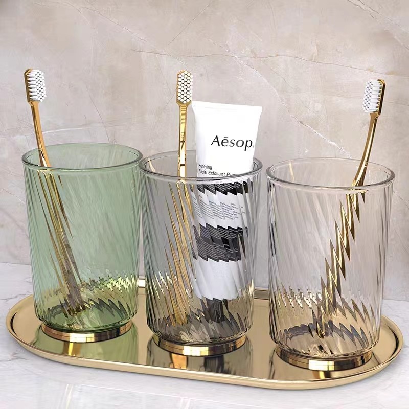 轻奢刷牙杯创意漱口杯情侣电镀牙缸高颜值家用酒店塑料杯洗漱杯子