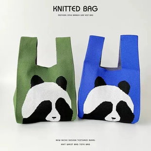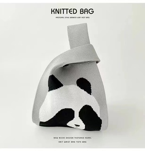 成都熊猫包包网红爷爷花花可爱周边针织包编织伴手礼文创手提袋子